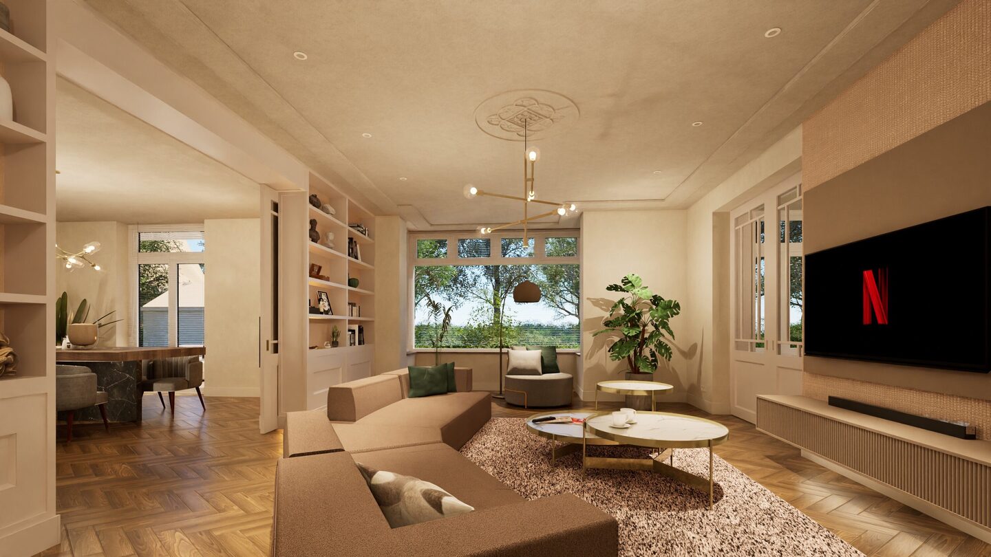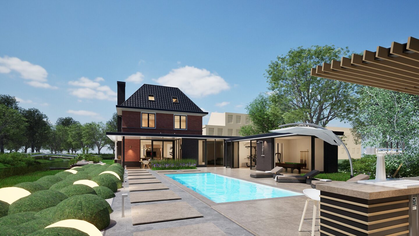 Tot in detail betreft het een jaren '30 woning met de kenmerkende baksteenarchitectuur voorzien van een rijke detaillering aan overstekken, natuursteen, glas-in-lood, schoorsteen, erkers en meer. Het ontwerp sluit aan op de omgeving en versterkt de kwaliteiten van de plek met een mee ontworpen tuinafscheiding aan de voorzijde, een terras die vanuit binnen in kleur- en materialisatie doorloopt naar het water en een meer moderne achterzijde waar alle luxe en comfort denkbaar is.