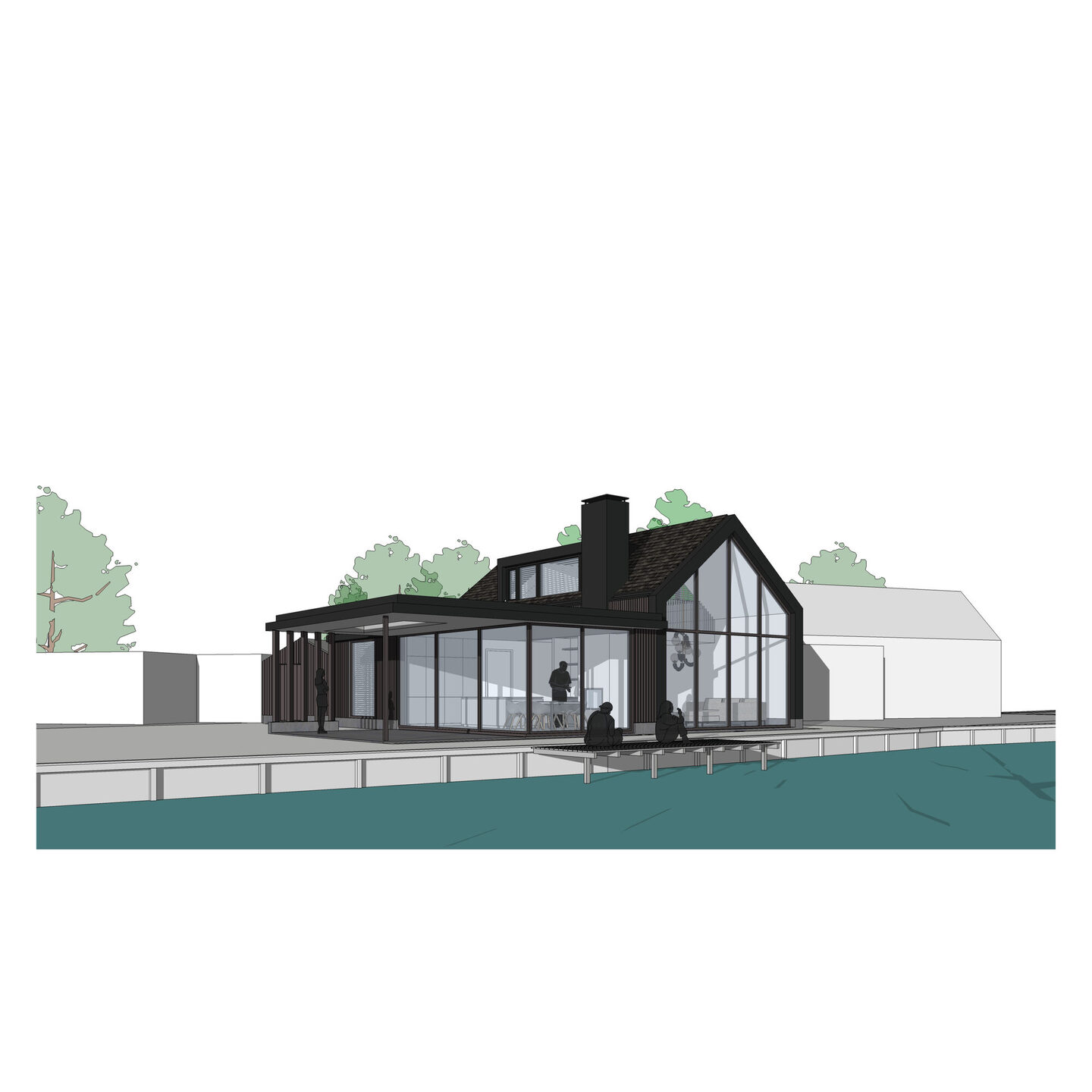 Voor deze vrijstaande woning aan de oevers van de Zuid-Hollandse wateren bevinden we ons momenteel in de definitieve ontwerpfase. Het architectonisch concept is zorgvuldig afgestemd op de unieke ligging aan het water. De opzet van het woonprogramma richt zich nadrukkelijk op deze kwaliteit: de woon- en leefruimtes oriënteren zich met royale gevelopeningen naar het waterlandschap.